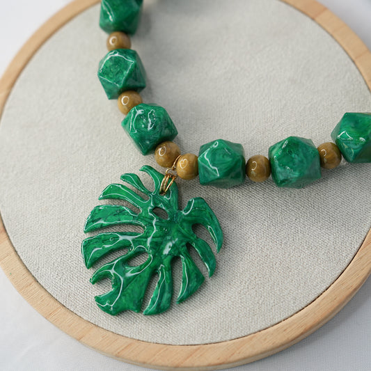 Collar Diseño Rombos Maxi Dije Hoja Monstera