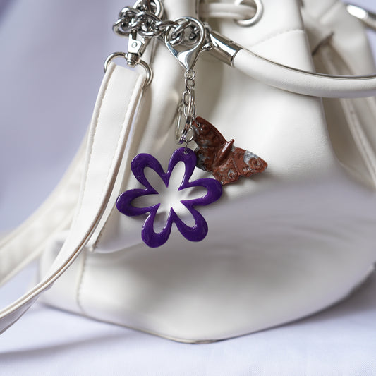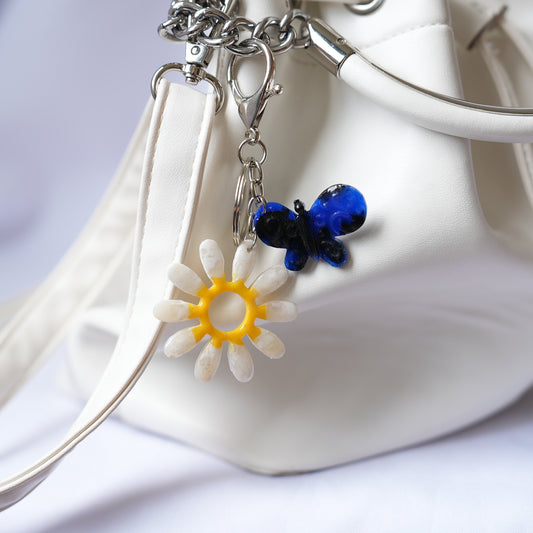 Llavero colgante Mariposa ornamental + Flor Asteráceas