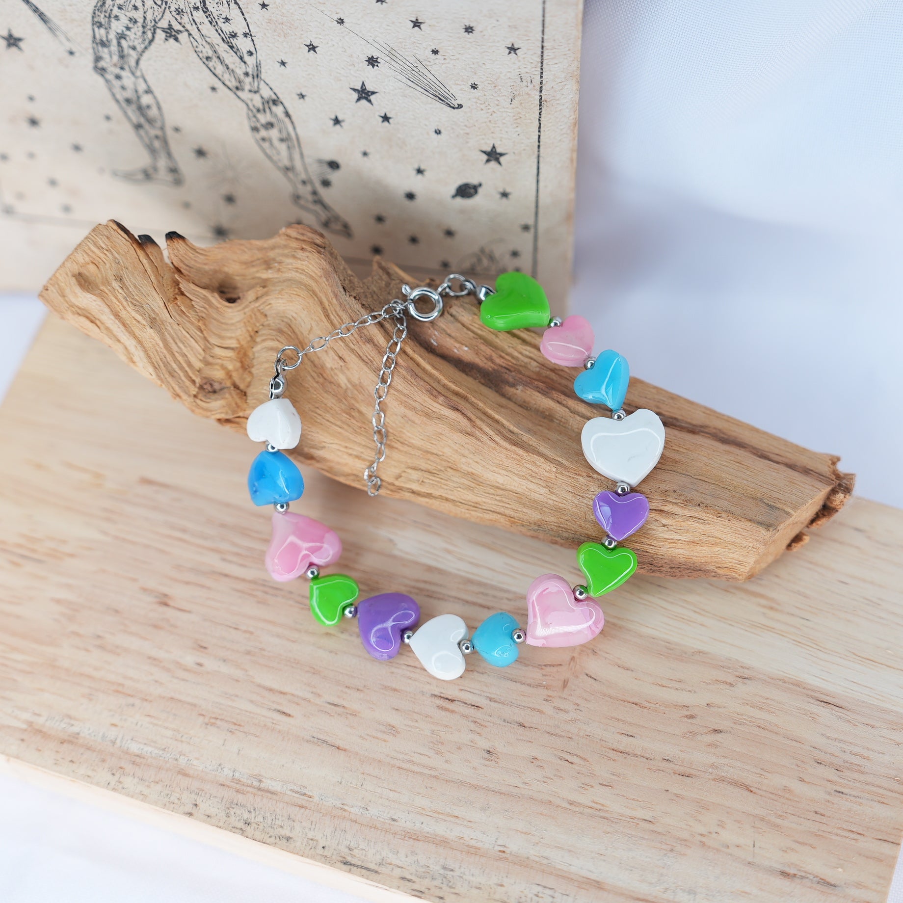 Con delicados tonos pastel, esta pulsera refleja ternura, calma y sutileza. Diseñada para iluminar tu estilo con un toque ligero y armonioso, es el accesorio perfecto para quienes buscan belleza serena con un significado especial.