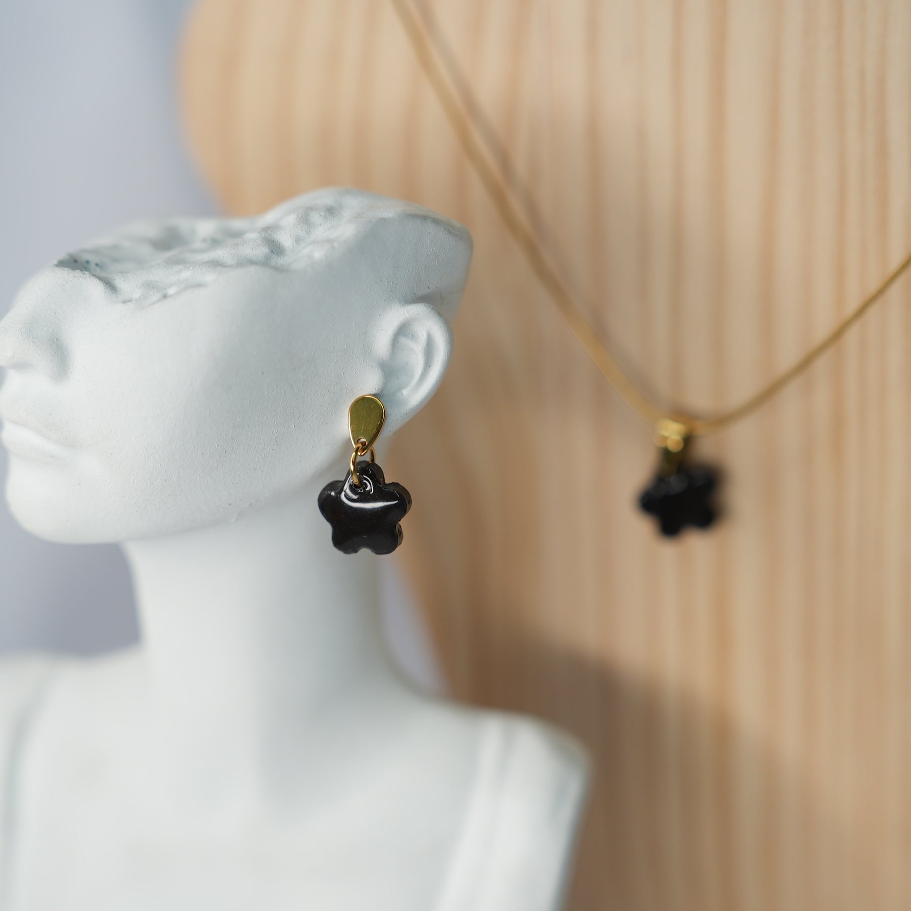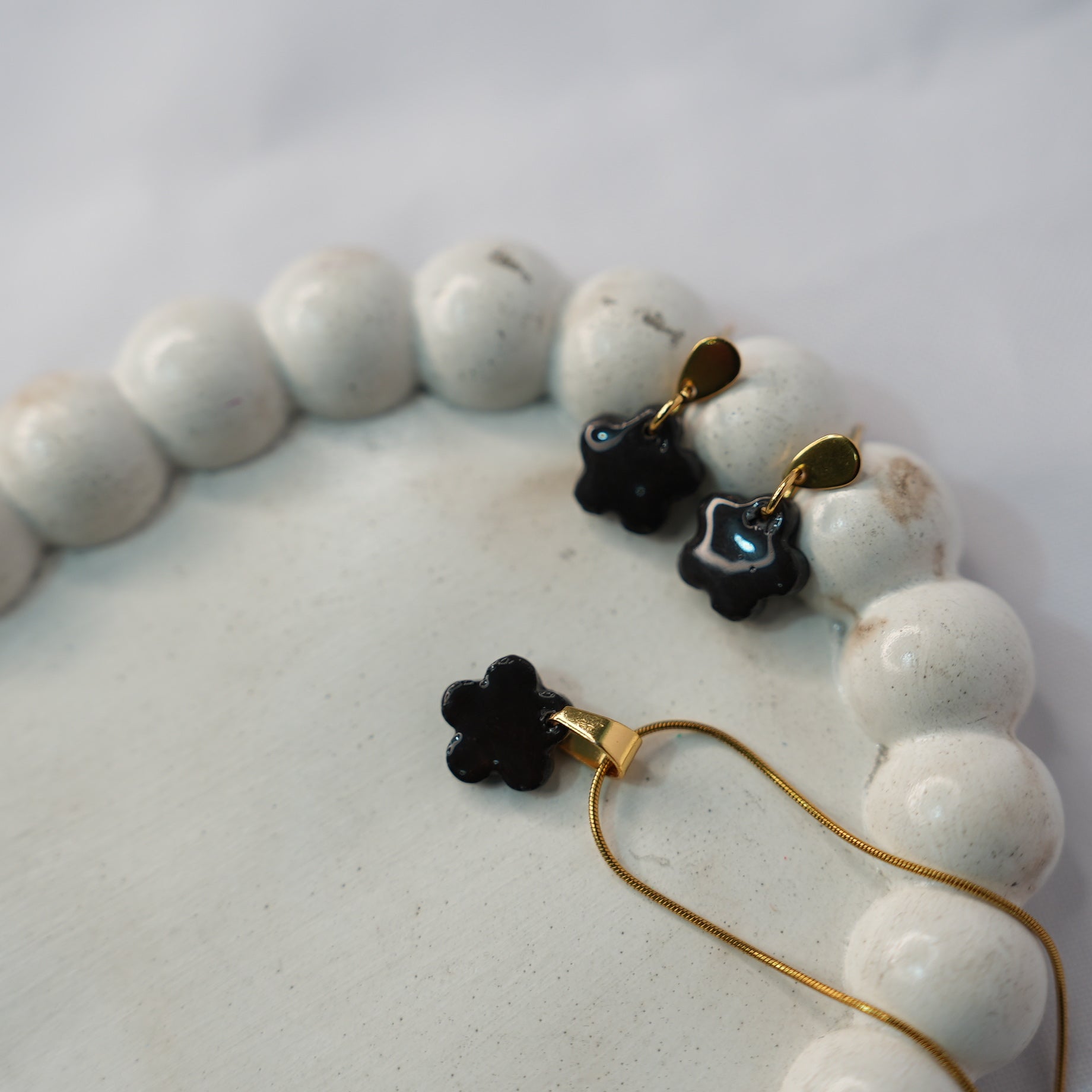 El Set Mini Flor en color negro de nuestra colección Raíces Luminosas es un tributo a la naturaleza resiliente. Cada pieza, nacida de la transformación artesanal de plástico recuperado, captura la sofisticación de un jardín nocturno con un brillo profundo y atemporal. Luce la fuerza de lo pequeño con la elegancia de quien sabe que cada detalle cuenta para un futuro regenerativo.